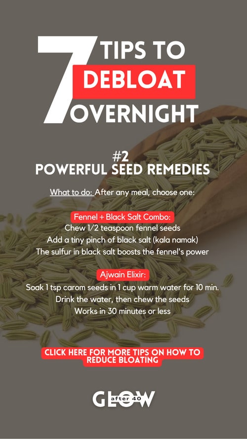 [amazon link=”B00AJRKHZC” title=”Fennel seeds“] contain anethole, a natural compound that relaxes your intestinal muscles and stops the spasms that trap gas. Adding [amazon link=”B086TYHM77″ title=”black salt“] makes it even better because its sulfur compounds boost your digestive enzyme production, making the fennel work even faster.