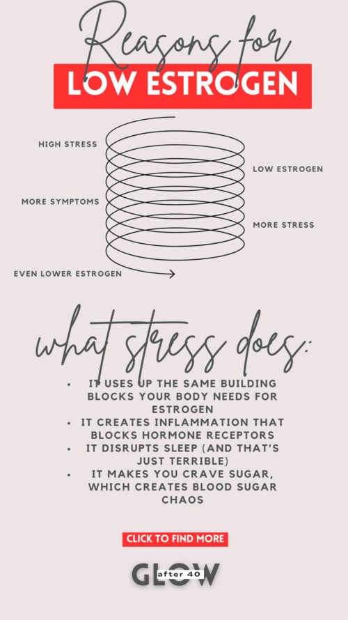 The stress-estrogen spiral: High stress → low estrogen → more symptoms → more stress → even lower estrogen. Breaking this cycle is crucial.